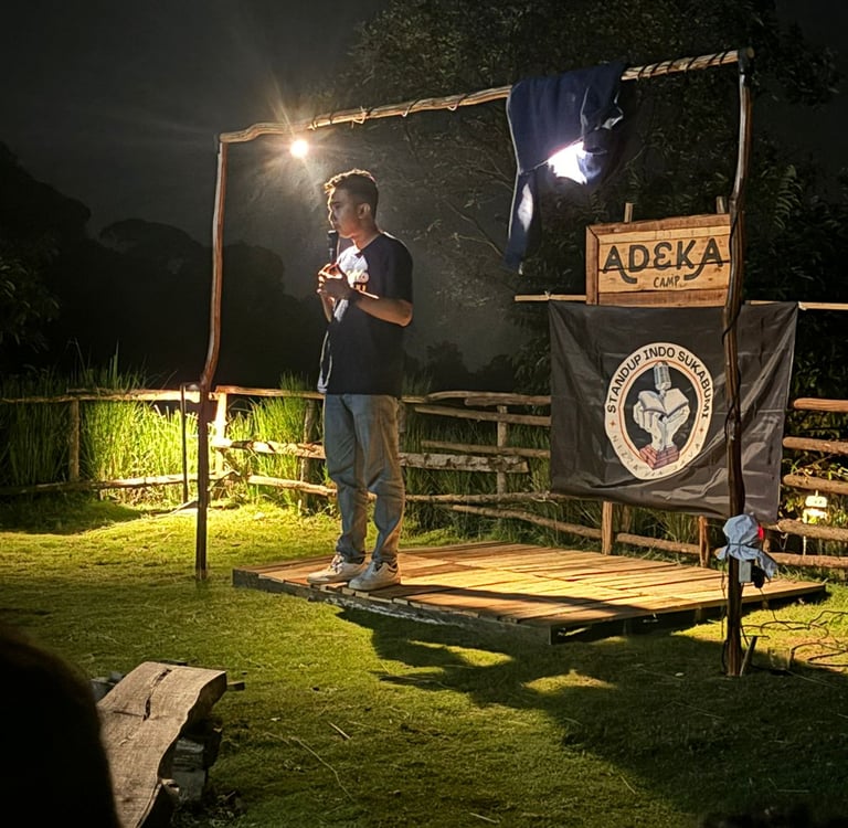 Salah satu cara terbaik untuk menikmati akhir pekan adalah dengan tawa! Itulah yang terjadi di Adeka Camp pada tanggal 11 Oktober 2024, saat kami menggelar acara stand-up comedy perdana yang kami sebut Tenda Tawa. Dalam kolaborasi yang luar biasa dengan komunitas Standup Indo Sukabumi, kami berhasil menciptakan suasana yang intim dan penuh tawa bagi semua tamu yang hadir.